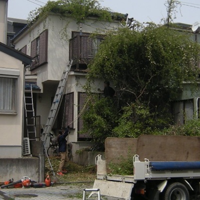 高所作業車で高圧洗浄 3階建てお住まいを高圧洗浄でクリーニングしました。 大木の伐採時にレンタルしますので、高所作業車を思いつきました。 鉄管パイプで足場を組む業者さんよりも圧倒的に経済的だったそうです。